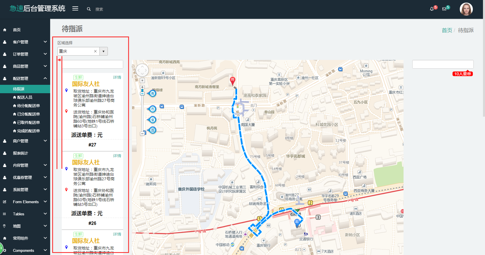 2. 能實(shí)時(shí)指派在線且距離較近配送員上門(mén)取件并配送;